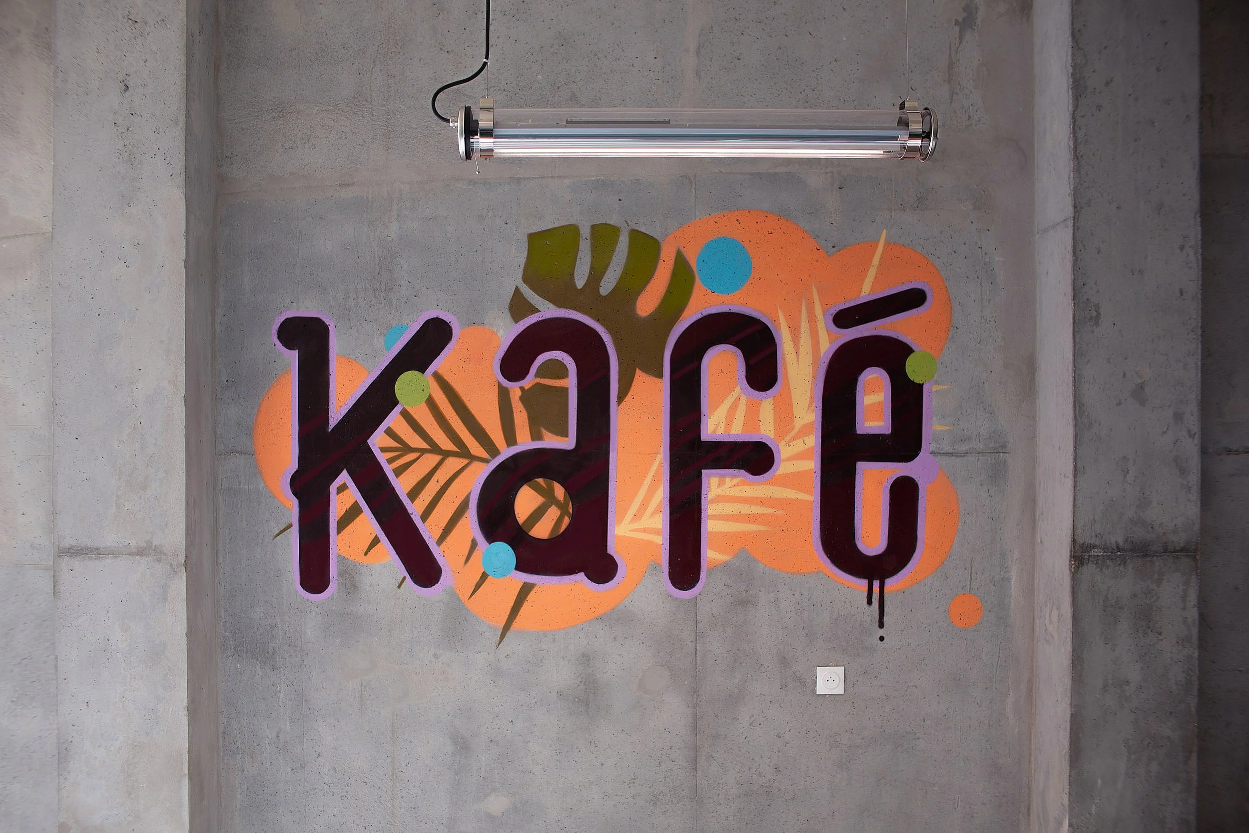 Objectif : Décorer l’espace en donnant la sensation de végétaliser la résidence étudiante, en peignant les colonnes tout en gardant leur aspect béton .